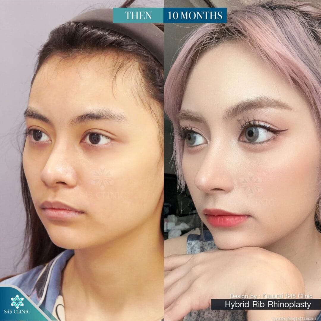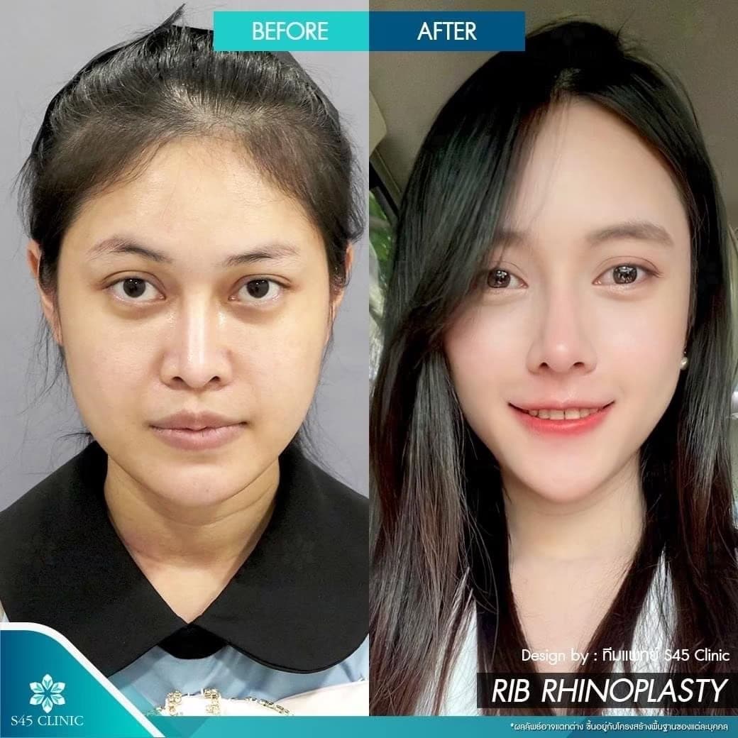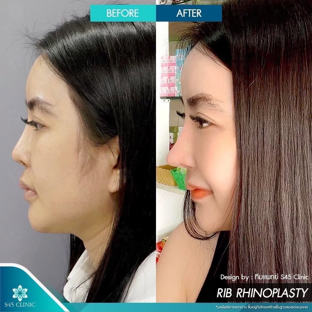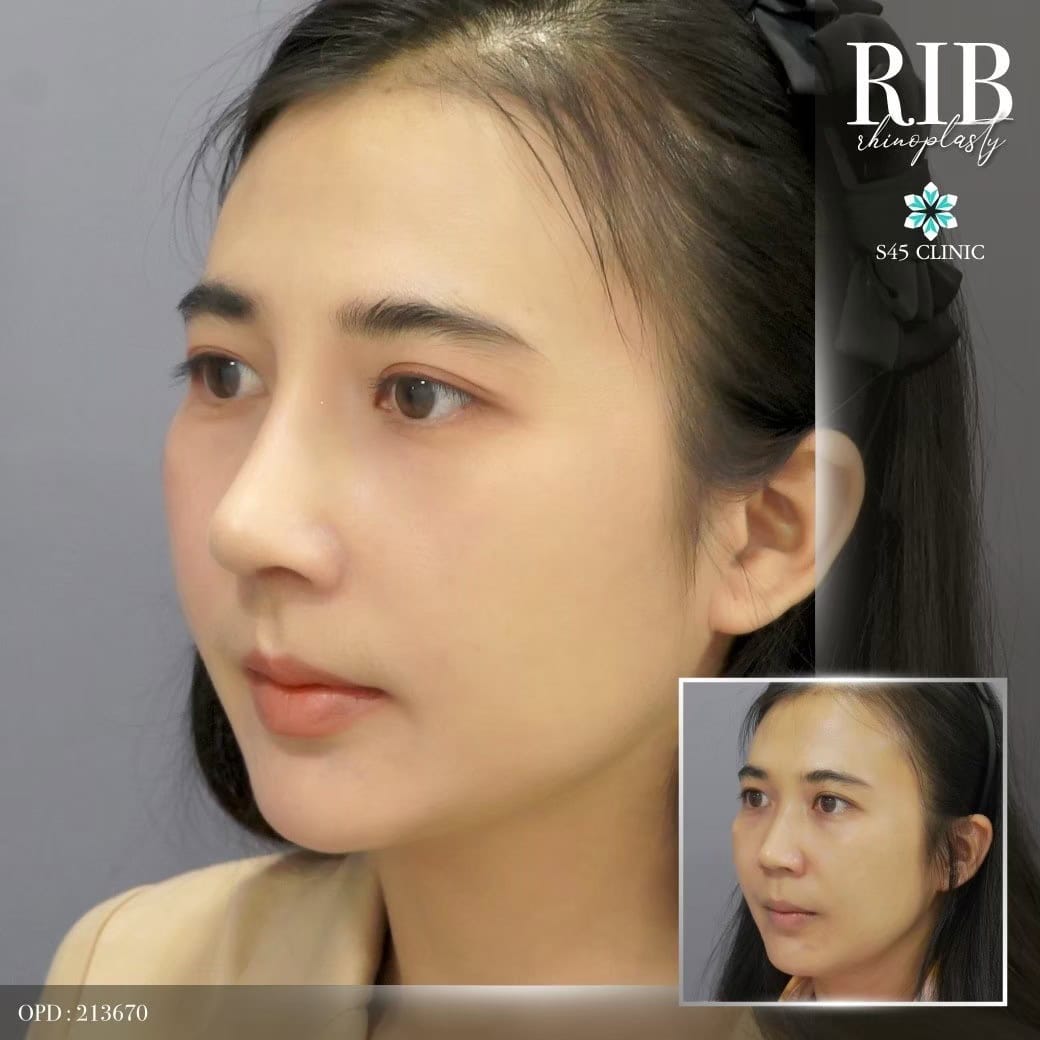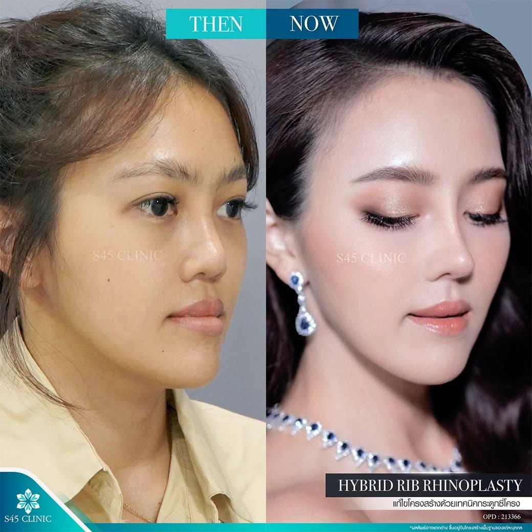 “จากเดิมจมูกสั้นและปลายรั้ง ตอนนี้พุ่งสวยเข้าที่แล้ว เทคนิคที่คุณหมอใช้ นั่นก็คือ ใช้กระดูกซี่โครงตัวเองร่วมกับแก้ไขโครงสร้างจมูกค่ะ ทำให้ปลายพุ่ง โครงสร้างจมูกยาวขึ้น โดยรวมมองแล้ว รับกับหน้าผาก คางและทรงปากเลยทำให้รูปหน้าเปลี่ยน ทั้งๆ ที่ทำจมูกอย่างเดียวเลย”