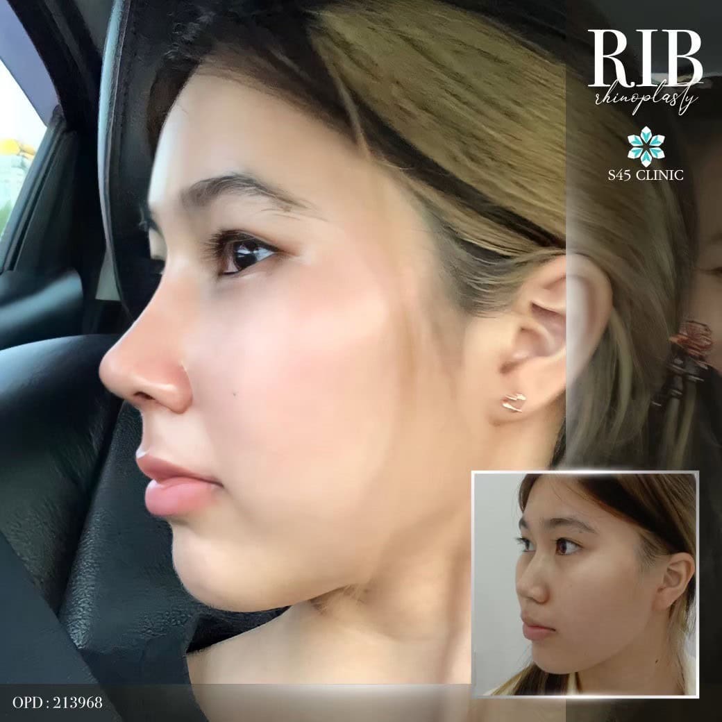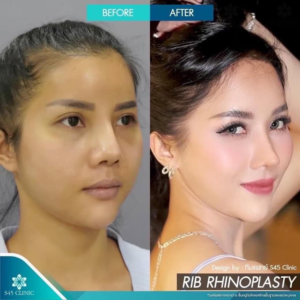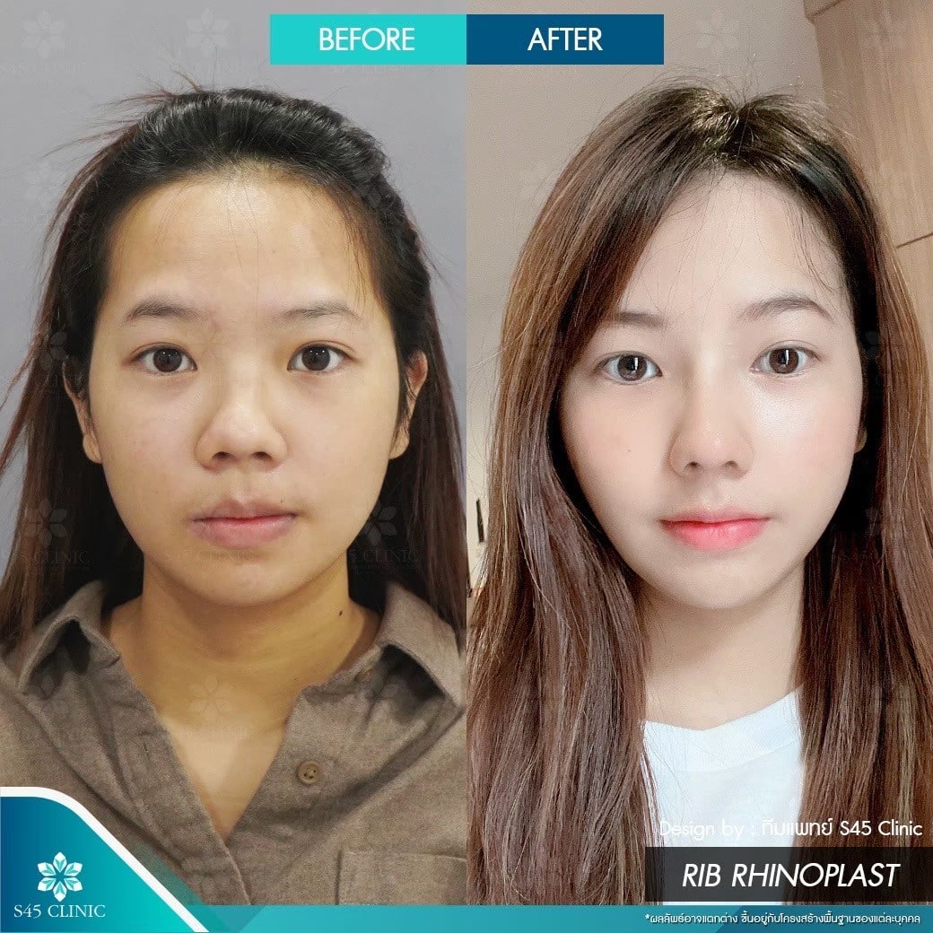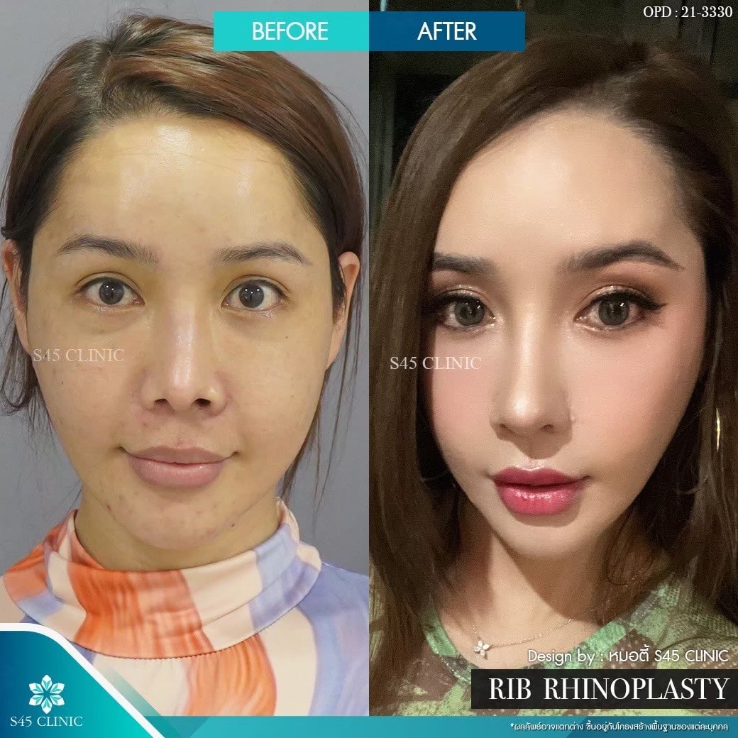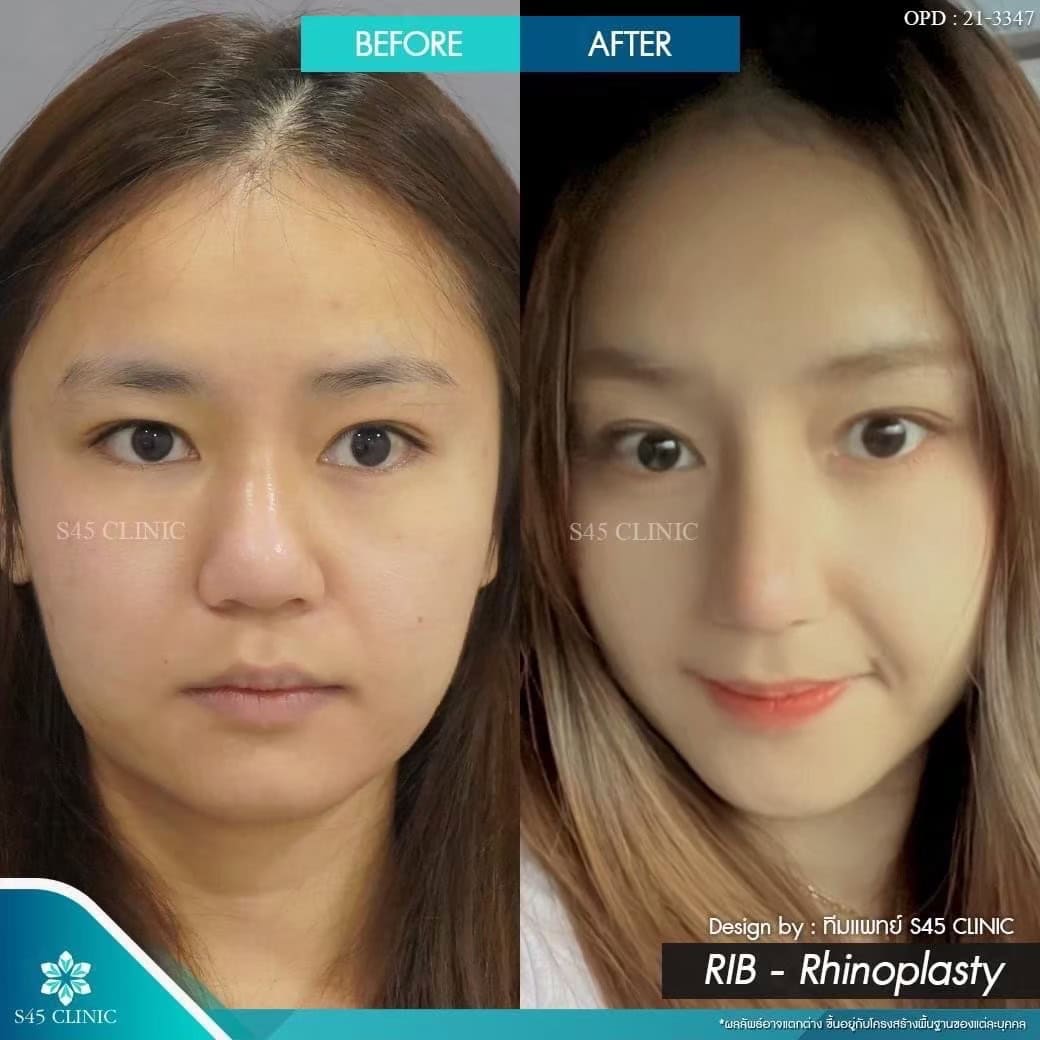 “จากเดิมจมูกสั้นและปลายรั้ง ตอนนี้พุ่งสวยเข้าที่แล้ว เทคนิคที่คุณหมอใช้ นั่นก็คือ ใช้กระดูกซี่โครงตัวเองร่วมกับแก้ไขโครงสร้างจมูกค่ะ ทำให้ปลายพุ่ง โครงสร้างจมูกยาวขึ้น โดยรวมมองแล้ว รับกับหน้าผาก คางและทรงปากเลยทำให้รูปหน้าเปลี่ยน ทั้งๆ ที่ทำจมูกอย่างเดียวเลย”