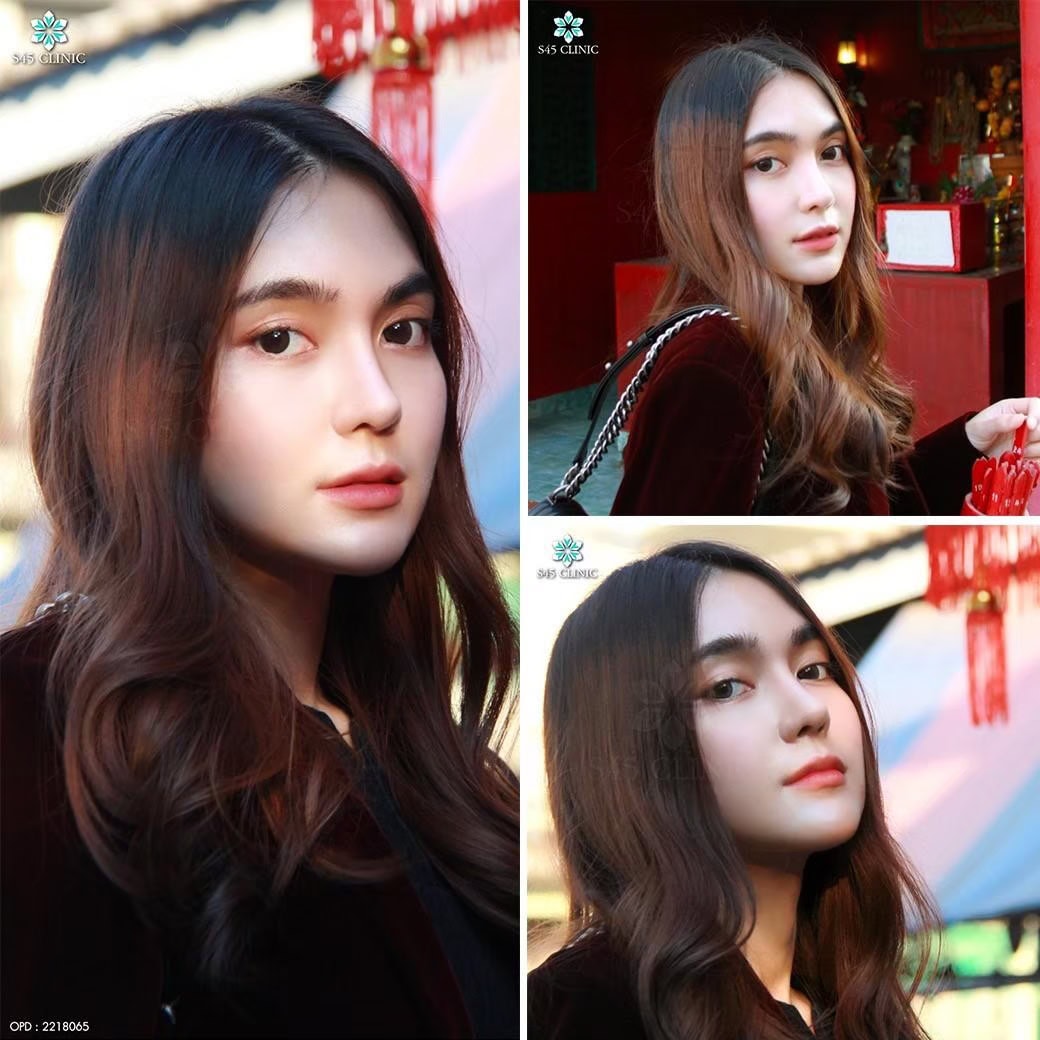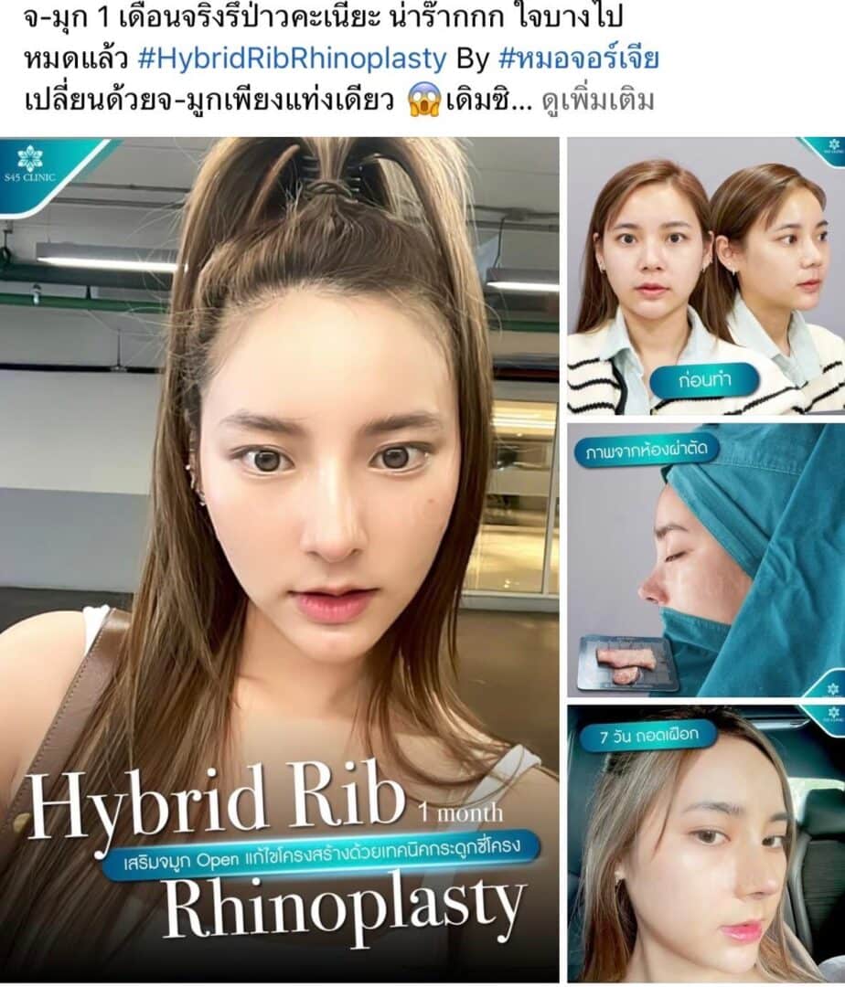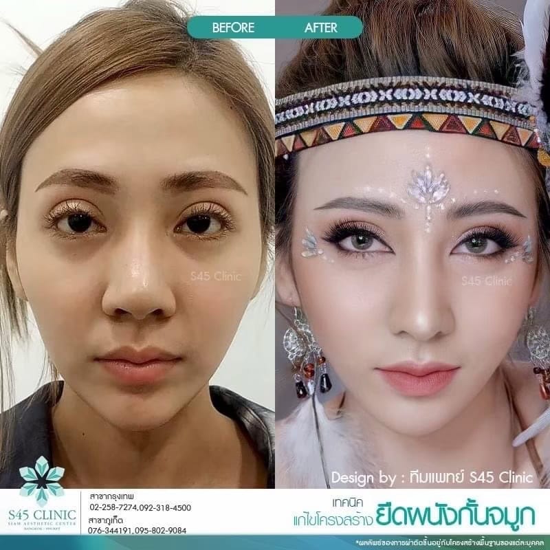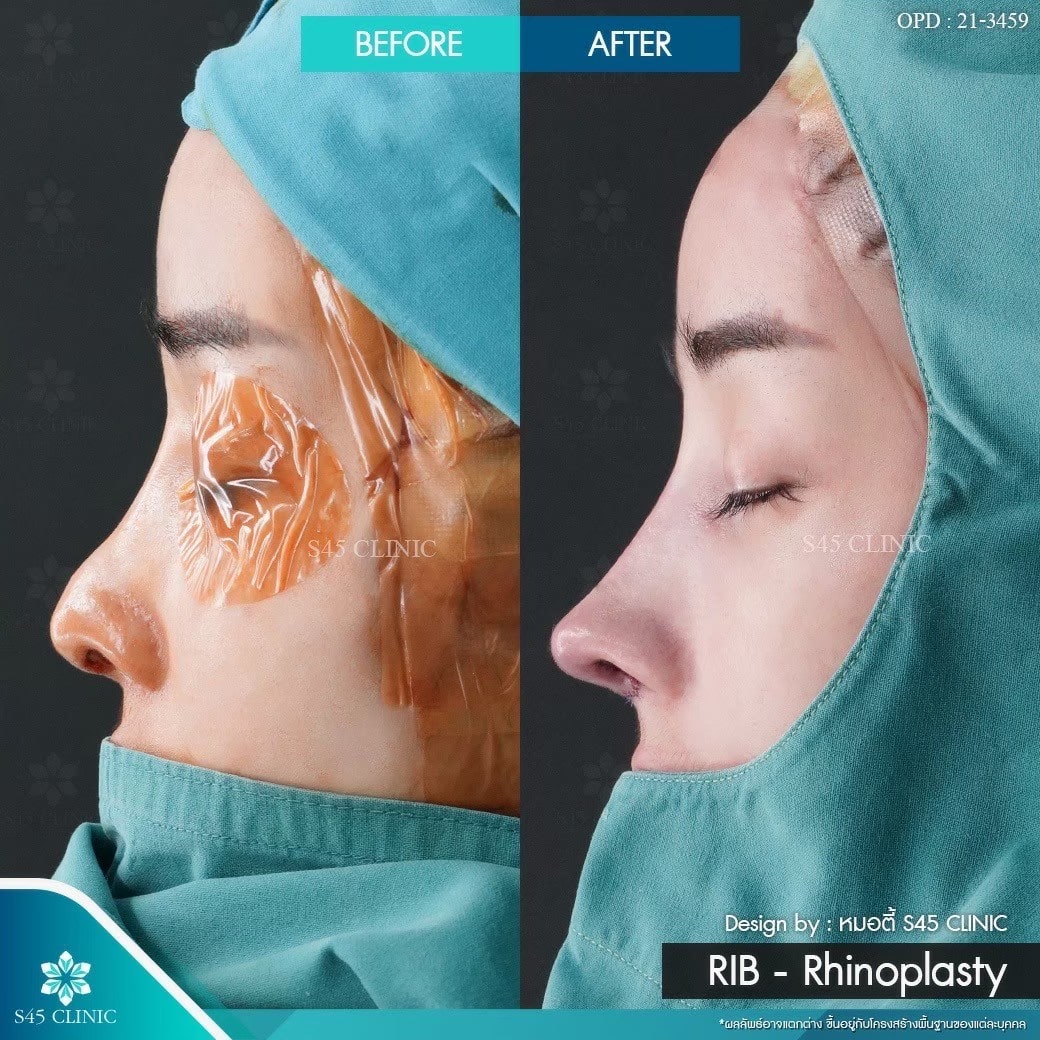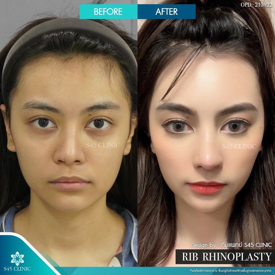 “จากเดิมจมูกสั้นและปลายรั้ง ตอนนี้พุ่งสวยเข้าที่แล้ว เทคนิคที่คุณหมอใช้ นั่นก็คือ ใช้กระดูกซี่โครงตัวเองร่วมกับแก้ไขโครงสร้างจมูกค่ะ ทำให้ปลายพุ่ง โครงสร้างจมูกยาวขึ้น โดยรวมมองแล้ว รับกับหน้าผาก คางและทรงปากเลยทำให้รูปหน้าเปลี่ยน ทั้งๆ ที่ทำจมูกอย่างเดียวเลย”
