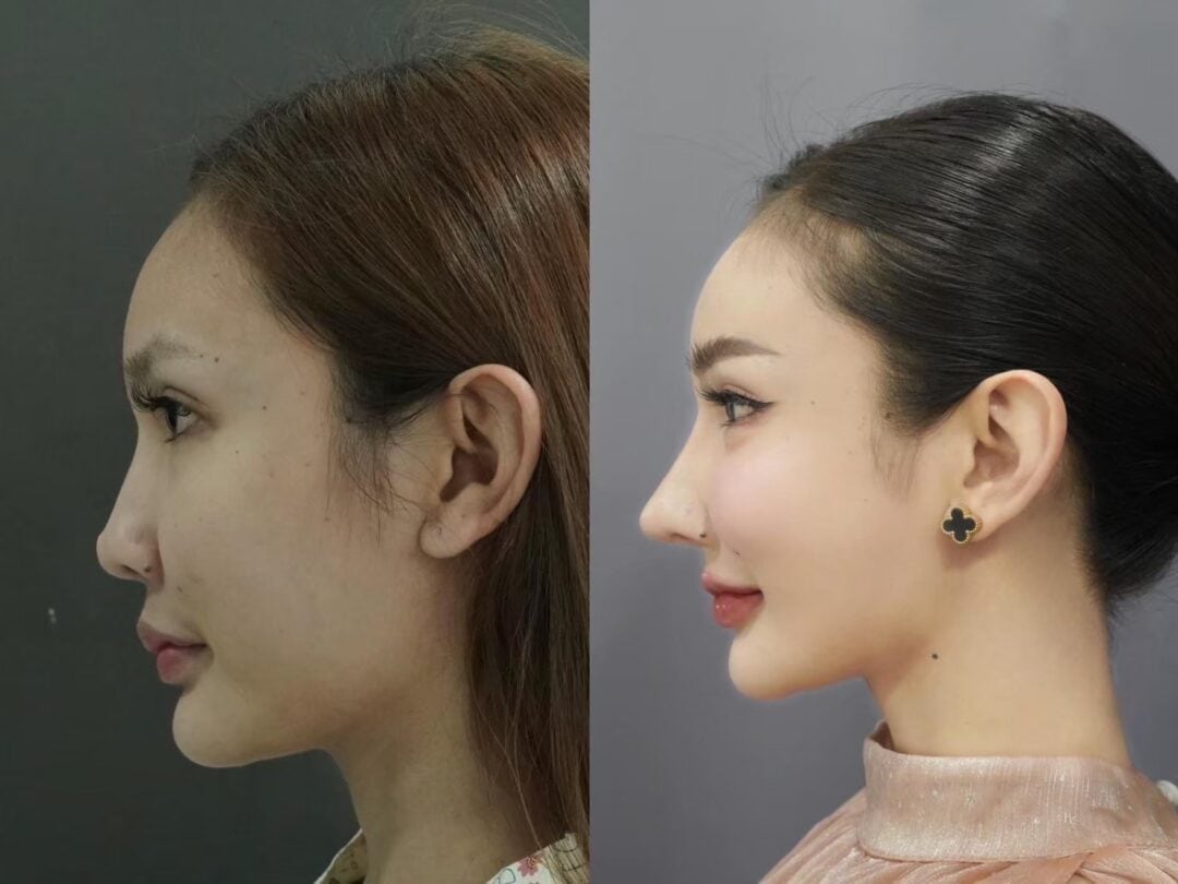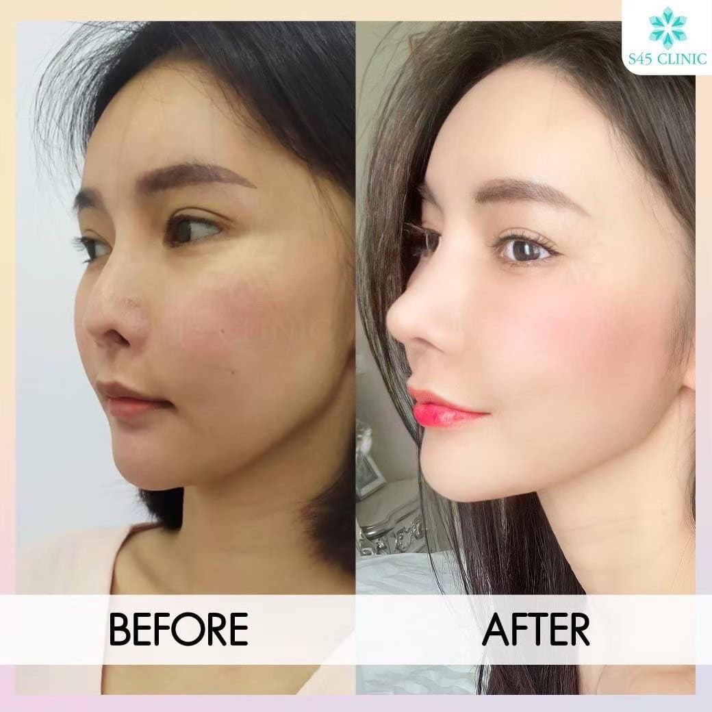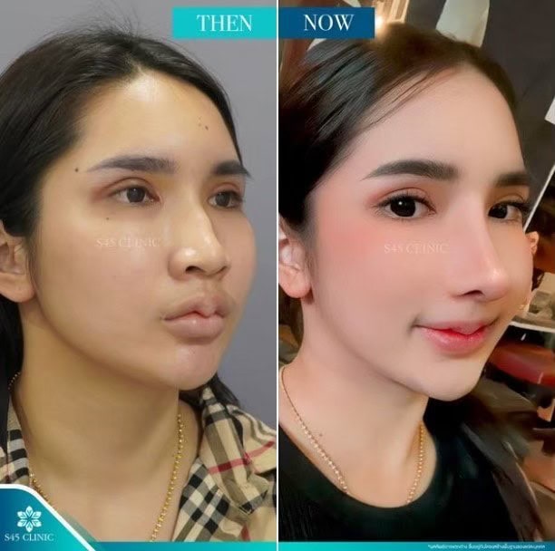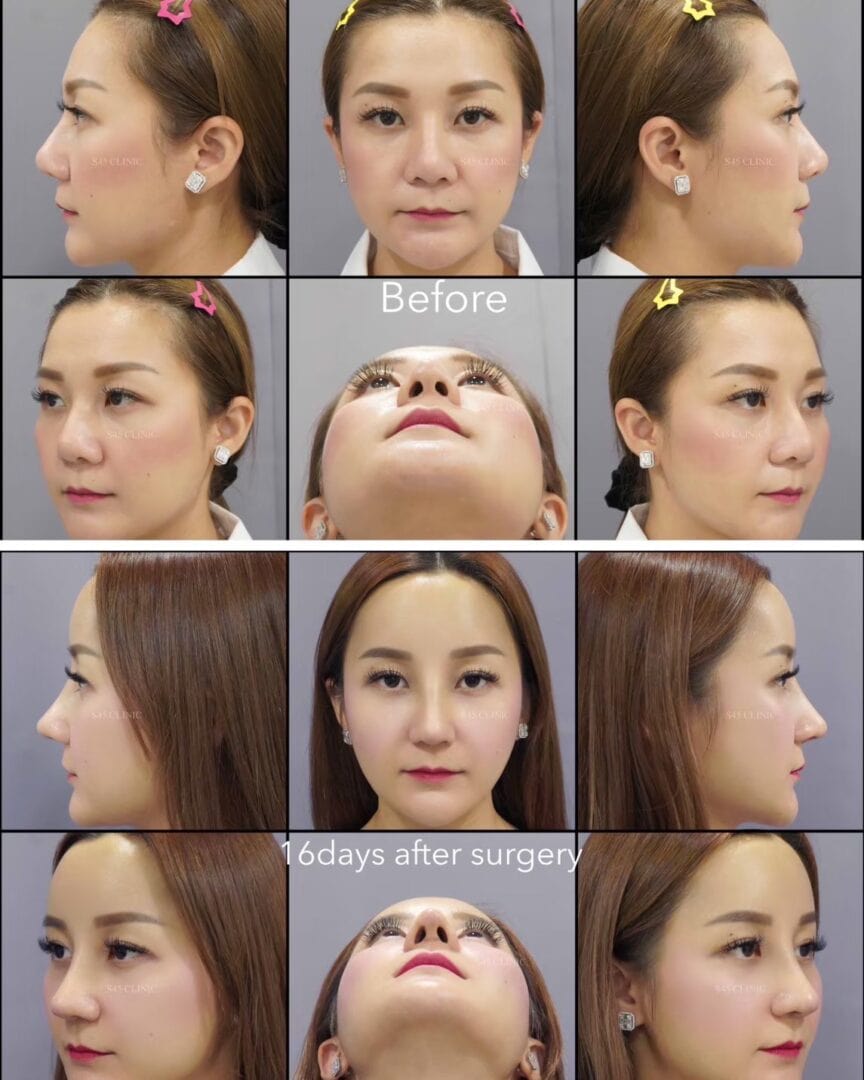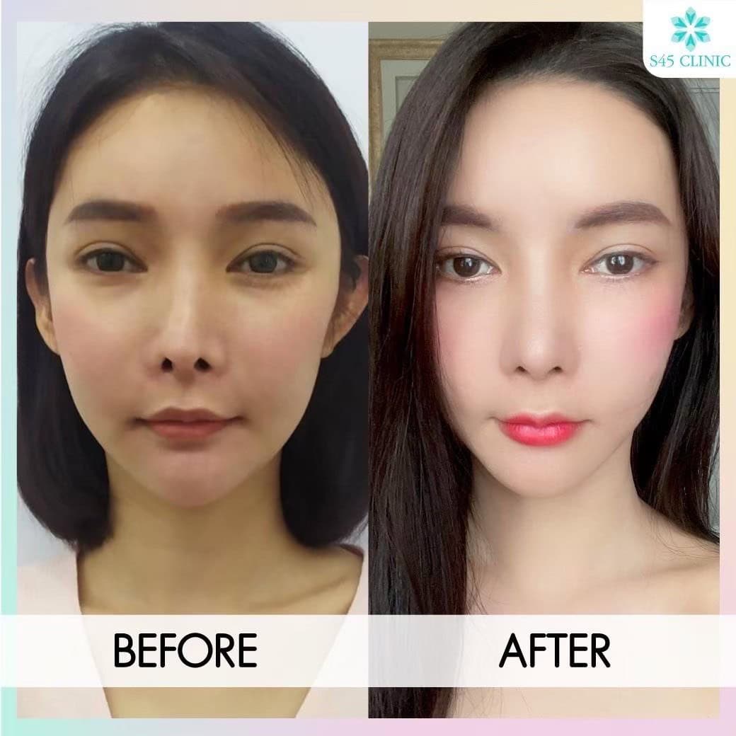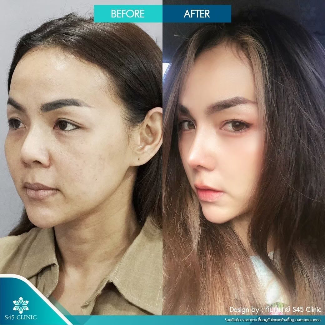 “จากเดิมจมูกสั้นและปลายรั้ง ตอนนี้พุ่งสวยเข้าที่แล้ว เทคนิคที่คุณหมอใช้ นั่นก็คือ ใช้กระดูกซี่โครงตัวเองร่วมกับแก้ไขโครงสร้างจมูกค่ะ ทำให้ปลายพุ่ง โครงสร้างจมูกยาวขึ้น โดยรวมมองแล้ว รับกับหน้าผาก คางและทรงปากเลยทำให้รูปหน้าเปลี่ยน ทั้งๆ ที่ทำจมูกอย่างเดียวเลย”